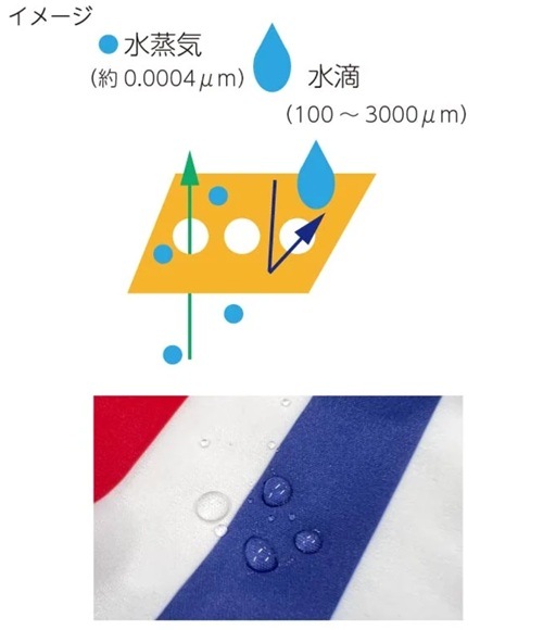 衣類ないの水蒸気や湿気を外に逃して蒸れを防ぐ機能を兼ね備えた防水効果を言います。
